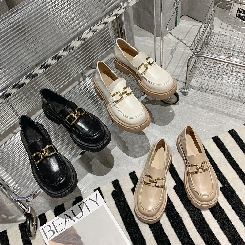 Новинка 2023, модная повседневная спортивная обувь, женские кожаные туфли на толстой подошве, дышащие однотонные туфли
