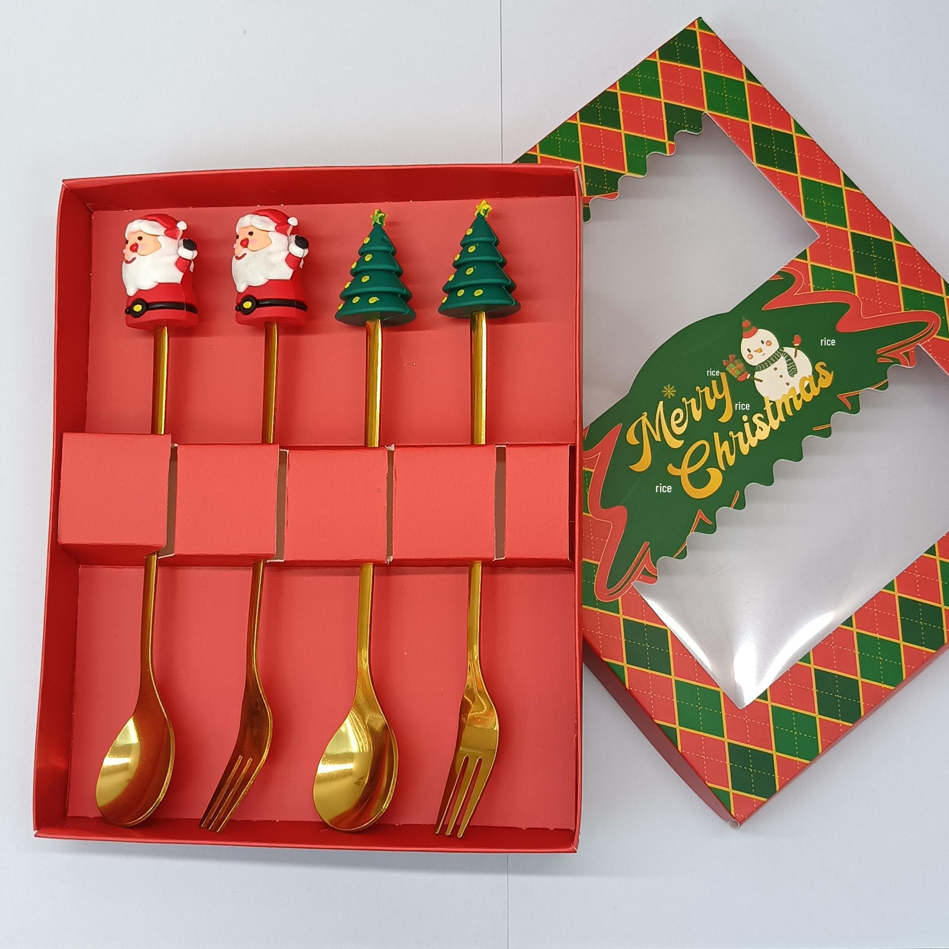 Креативный мультяшный набор ложек и вилок из нержавеющей стали: Палочка для кофе, Фруктовая вилка, Рождественский подарок