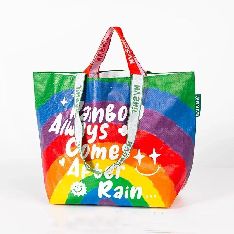 Креативный подарок Ручная сумка для покупок Цветная печать Пластиковая тканая сумка Большая вместимость Водонепроницаемая Наплечная сумка для хранения