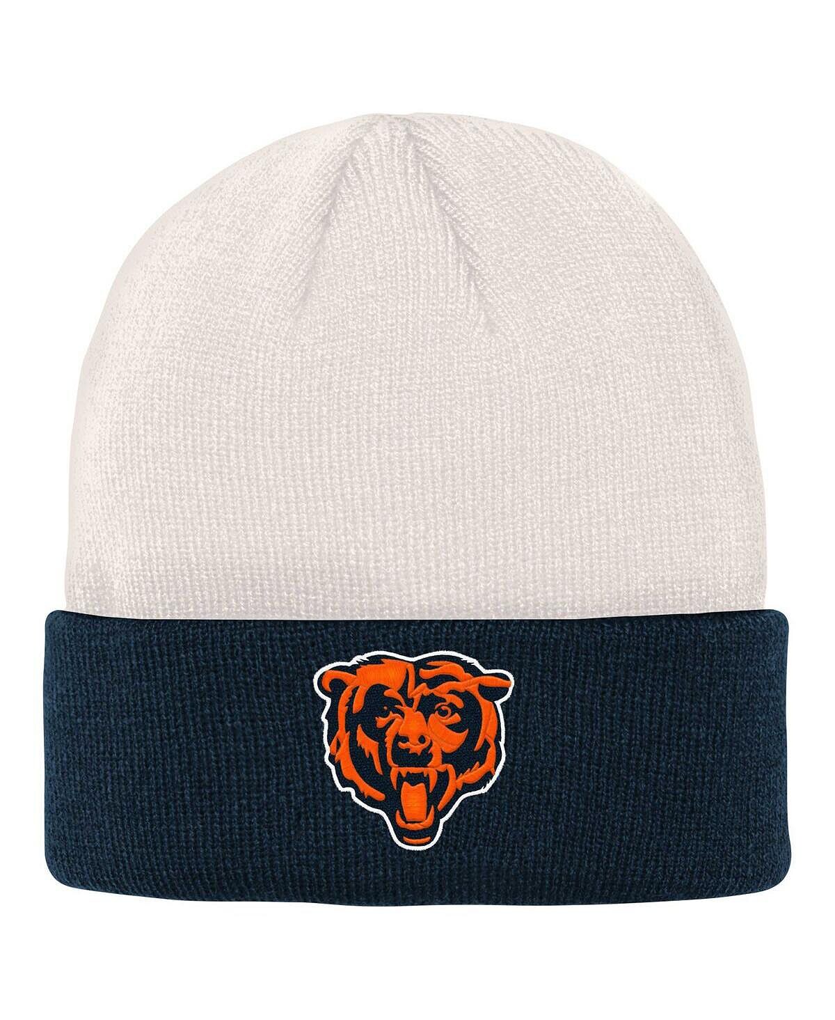 Кремовая, темно-синяя вязаная шапка с манжетами с костями для юношей Chicago Bears Outerstuff