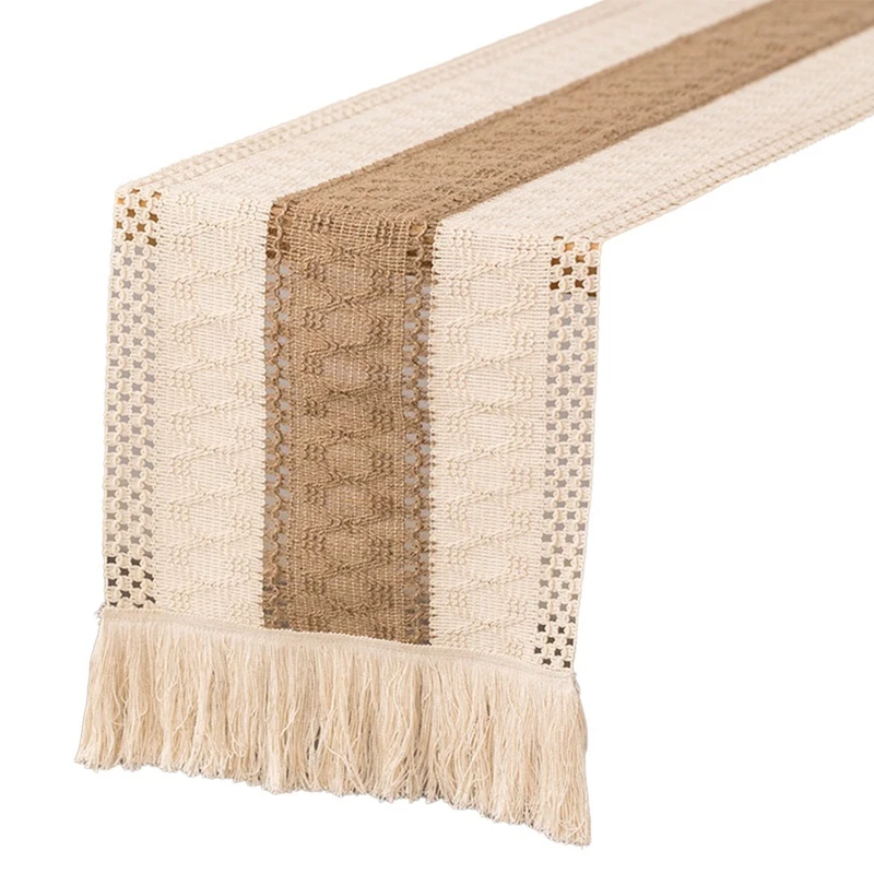 Кремово-бежевое настольное полотенце в богемном стиле с кисточками, плетеный вручную стол из хлопка и льна для фермерского стола, Осенний с...