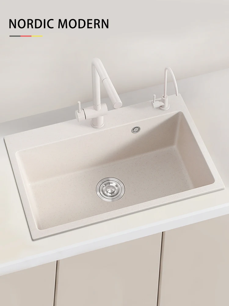 Кремово-белая кухонная раковина из кварцевого камня, большая гранитная маленькая раковина с одним слотом, встроенная на сцене и под столешнице