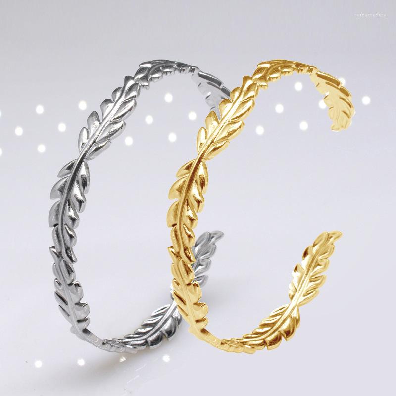 Bangle Retro C-shaped Adjustable Leaf-shaped Stainless Steel Bracelet Titanium Female