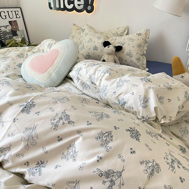 Кремовый Цветочный Постельный Комплект Без Наполнителя Дышащий Зеленый Ин Двуспальный/Королевский Размер Одеяло Пододеяльник Простыня Наволочка Постельное Белье Twin 3pcs for 1m bed