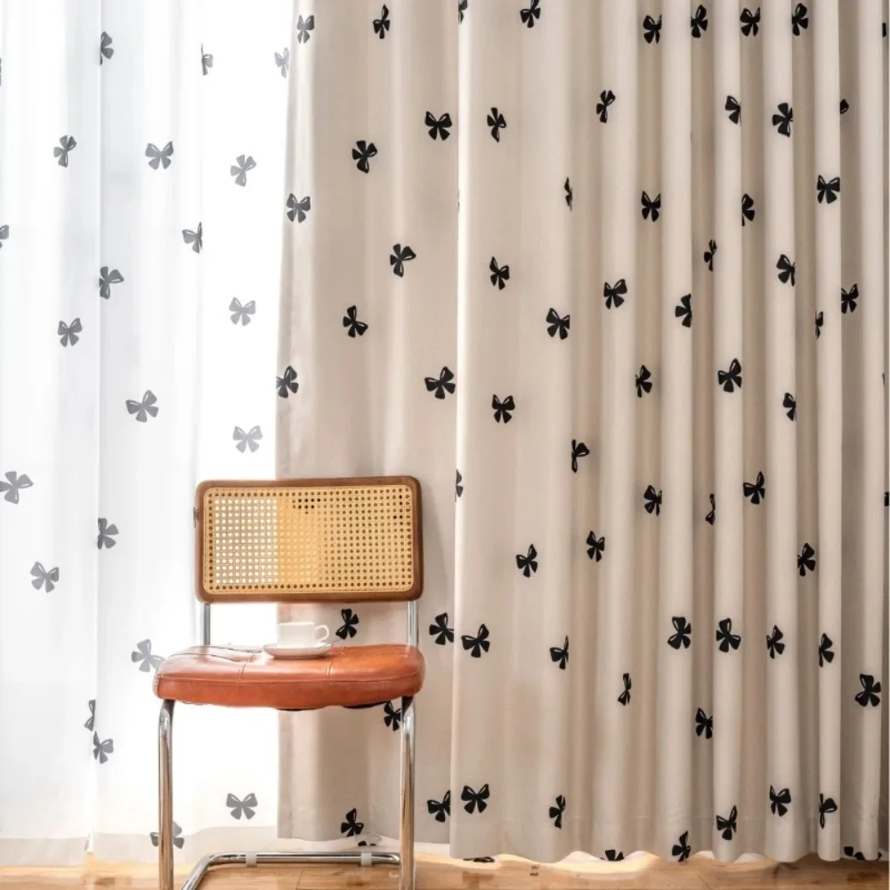 Кремовый стиль, черные шторы с бантом и принтом, корейский стиль, молочно-белые синельные плотные шторы для комнаты для девочек, спальни, гостиной