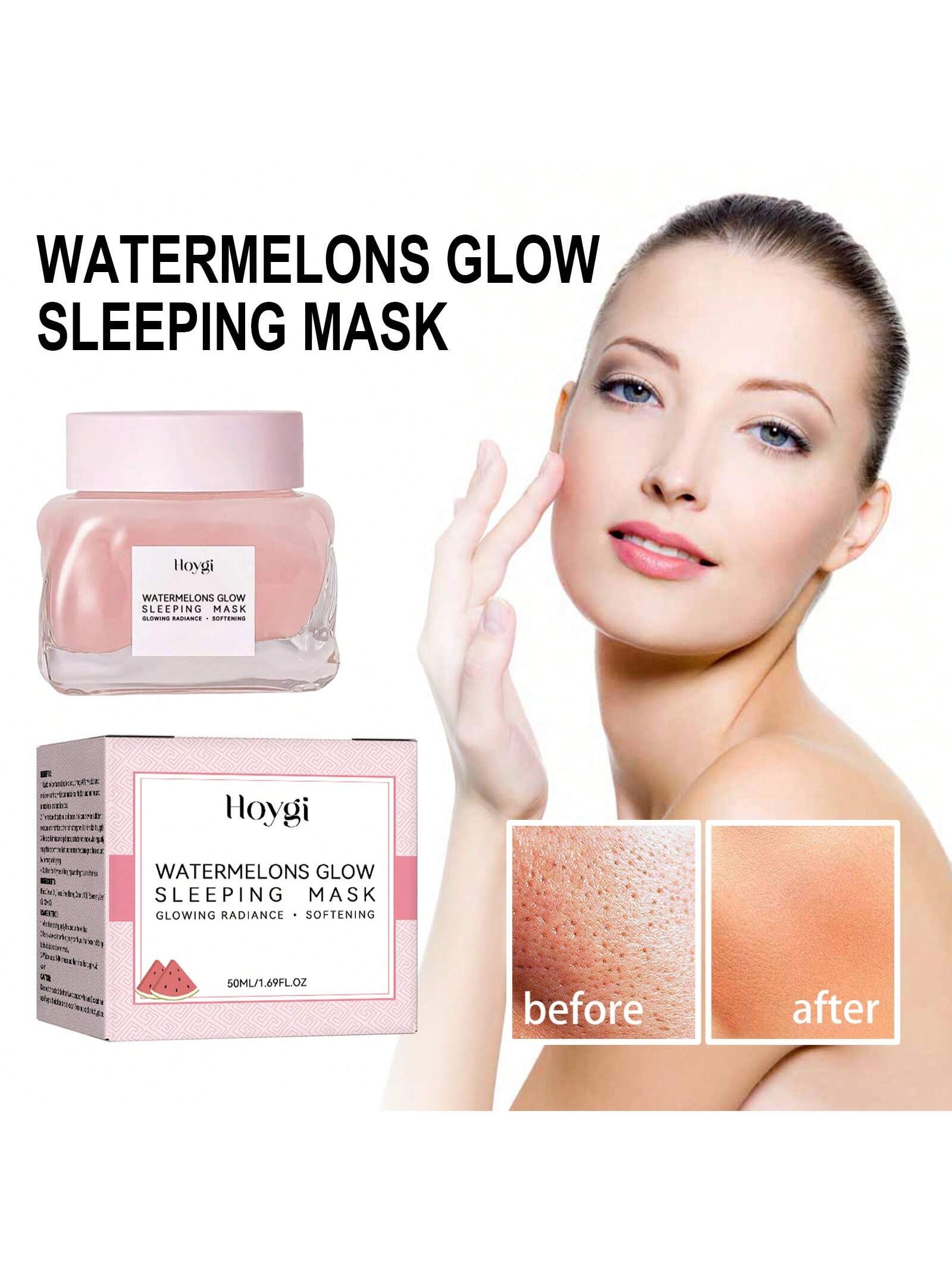 Крем для лица «Арбузная светящаяся ночная маска» с маской 50 мл. Восстановление покраснений на лице. Увядание шрамов от прыщей. Увлажнение кожи. Увлажнение и осветление.