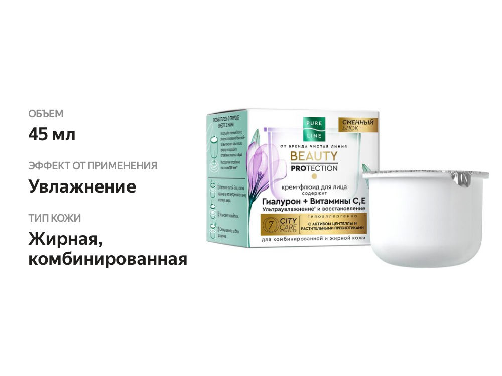 Крем-флюид для лица Чистая линия Pure Line с гиалуроновой кислотой и витаминами C и E, сменный блок, 45 мл