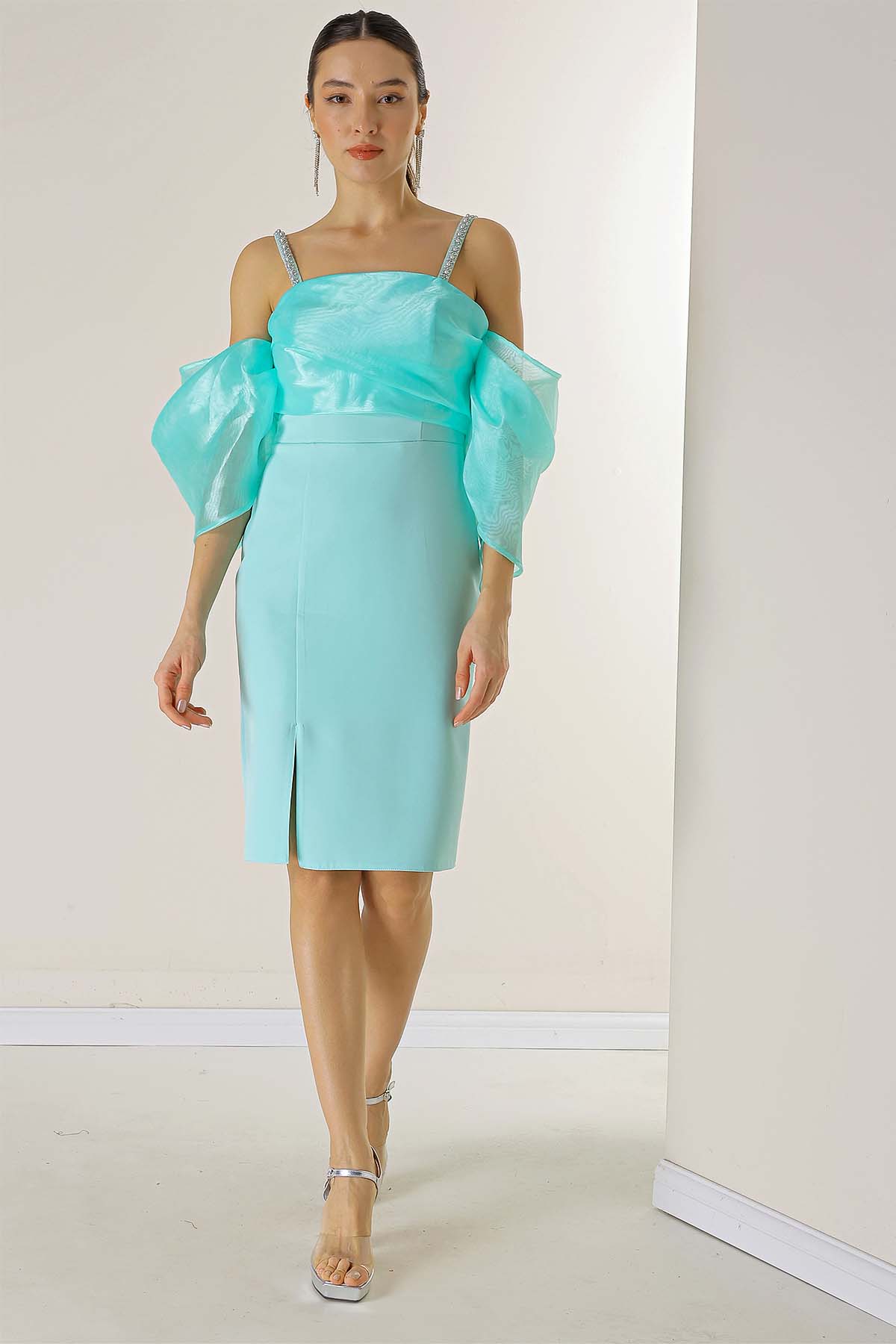 Креповое платье из органзы с короткими рукавами и бусами на подкладке