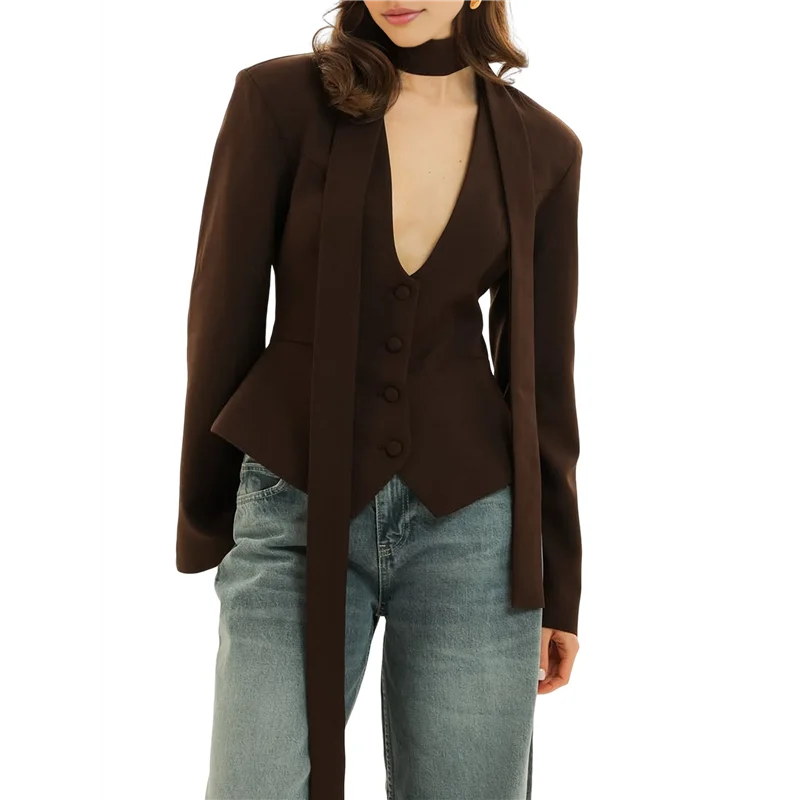 GYTB-Женский пиджак с длинными рукавами, однотонный шарф с v-образным вырезом, приталенный крой с мягкими плечами