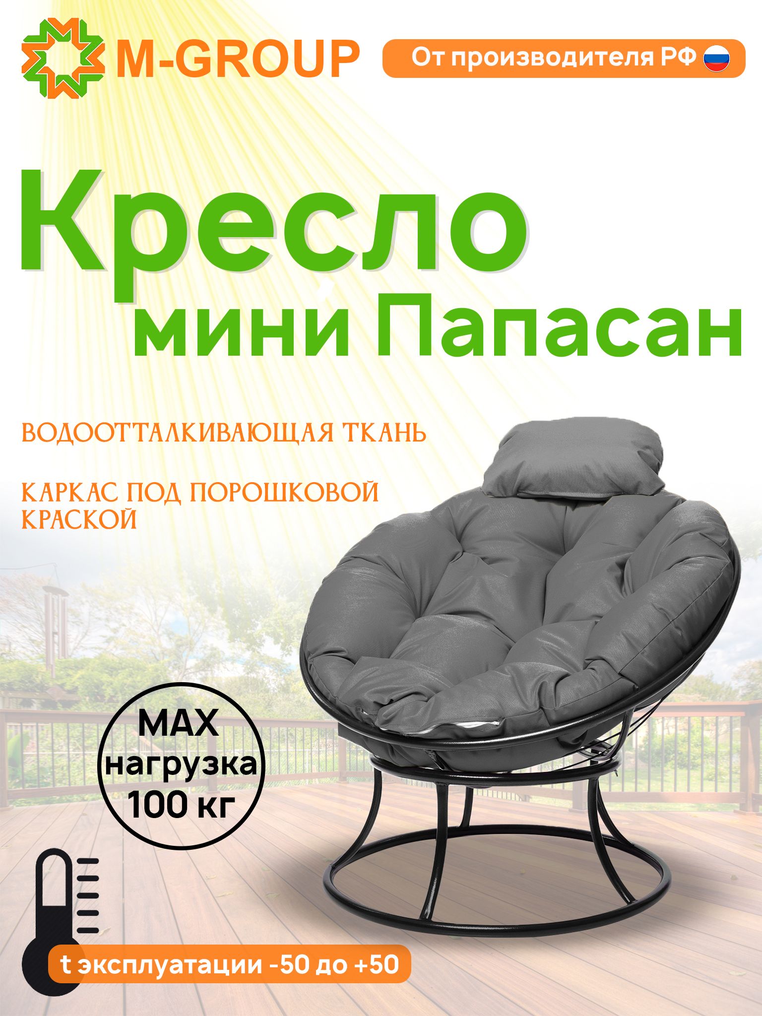 Кресло M-GROUP ПАПАСАН мини без ротанга черное, серая подушка, Черный, ПАПАСАН мини без ротанга