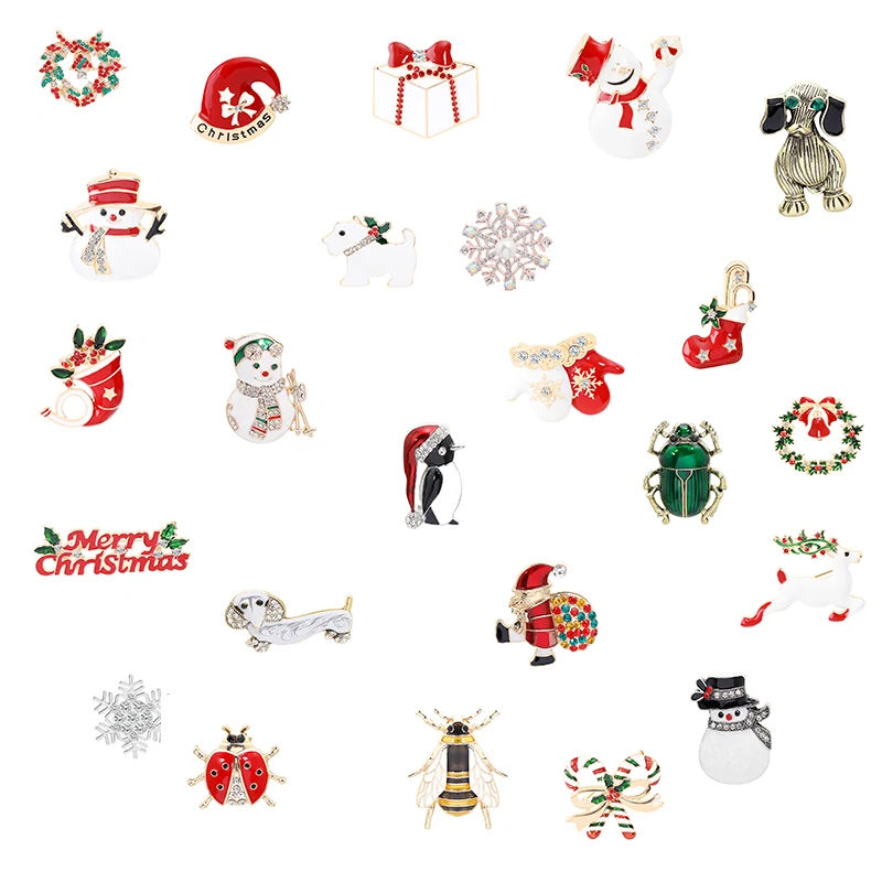 snowman elk gifts box gloves penguin Santa pins brooches enamel cartoon red hat merry christmas brooch party christmas gifts