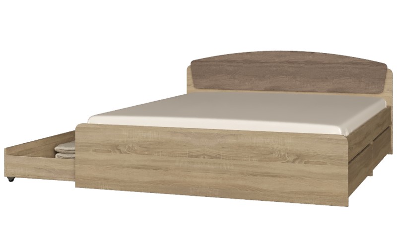 [html]Двуспальная кровать с основанием под матрас изготовлена из красивого, современного ламинированного ДСП толщиной 16 мм.Кровать Астория укомплектована выкатными ящиками для хранения постельного белья и других вещей
