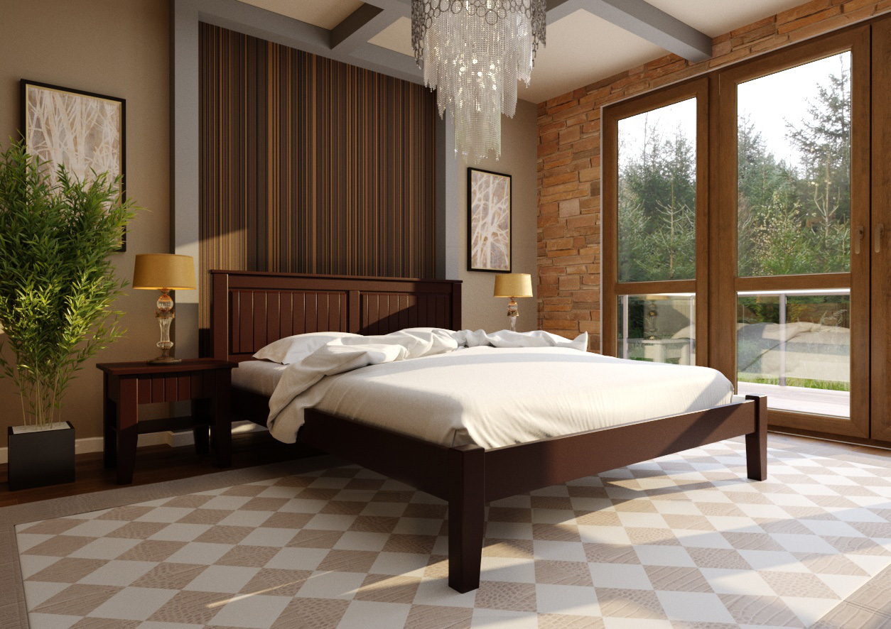 Кровать двуспальная деревянная Глория Низкое изножье из сосны в спальню 180х200 ЧДК цвет Шоколад