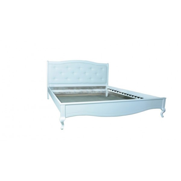 Кровать двуспальная из натурального дерева и МДФ Мишель 180х200 белый/экокожа белая Veles (с каркасом, без матраса)