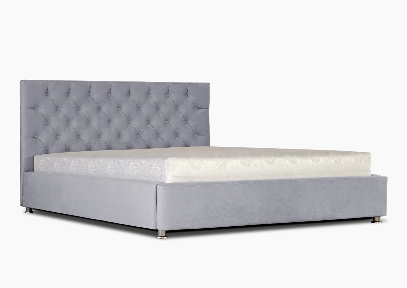 Кровать двуспальная с металлическим каркасом и мягким изголовьем из ДСП и ДВП 160х190 Милана (с пуговицами) обивка ткань серый Eurosof (без матраса и ниши)