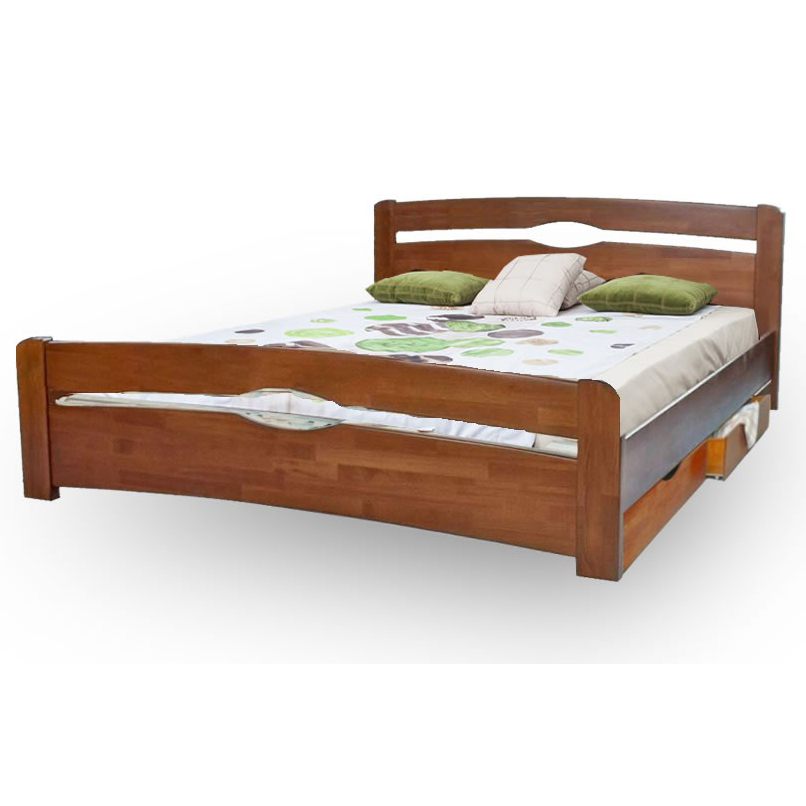 Кровать деревянная с четырьмя ящиками двуспальная 200х200 Каролина 2080х2100х850 мм Mix Mebli цвет Орех светлый