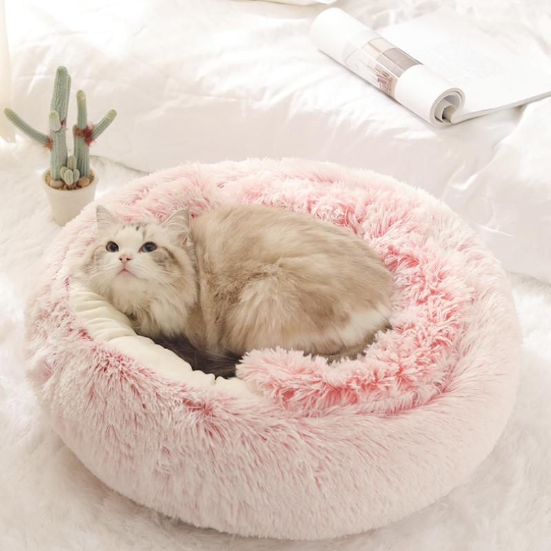 Кровать для кошек, матрас для домашних животных, теплая мягкая плюшевая кровать для домашних животных с чехлом, круглая спальная пещера для кошек и собак, пещера для маленьких собак и котят 40cm розовый