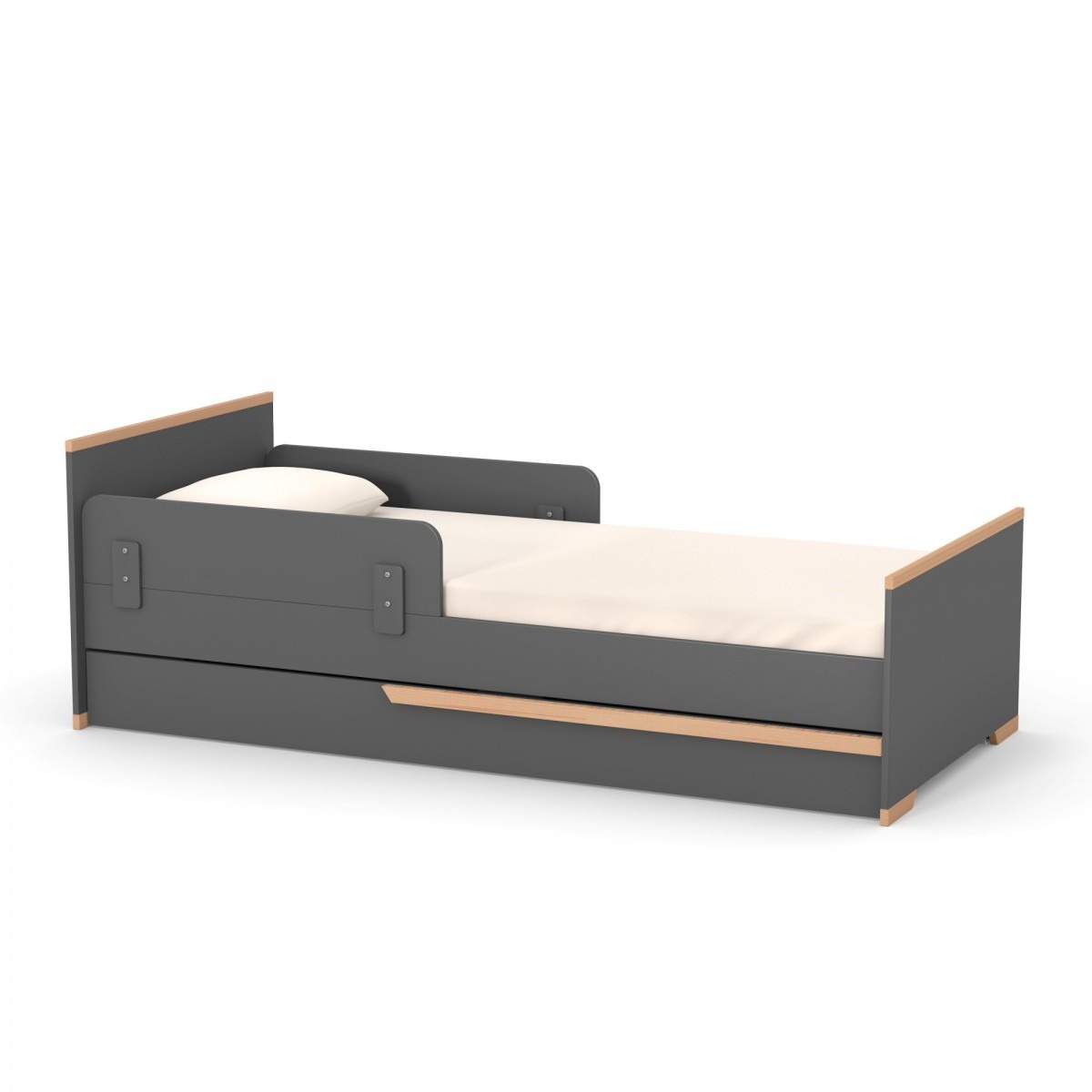 Кровать односпальная из ДСП и дерева Сиэтл 80x190 с ящиком темно-серый/бук Верес (без бортиков, без матраса)