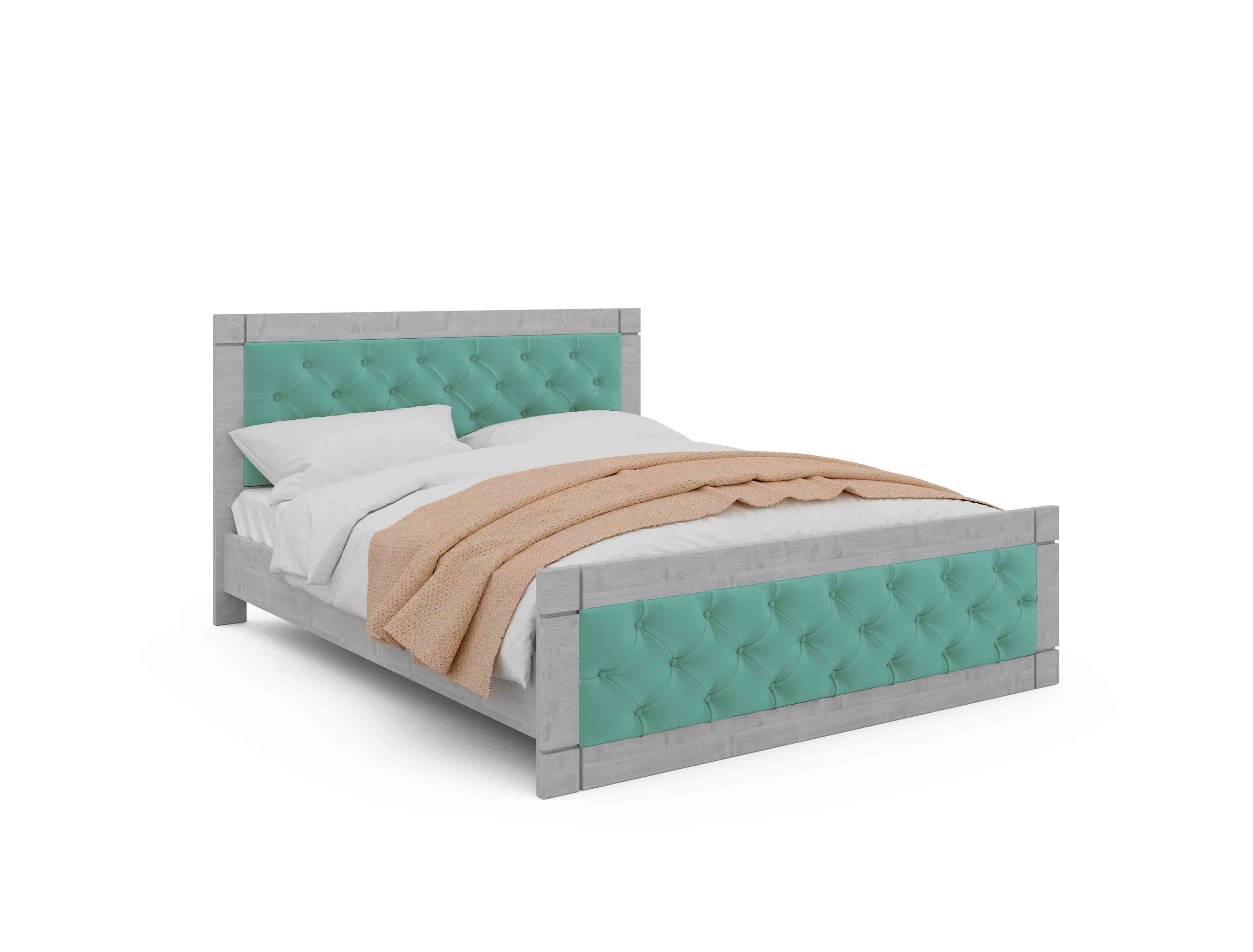 Кровать полуторная с мягким изголовьем Natali 140x200 ЛДСП белое дерево/ткань велюр Light Teal светло-бирюзовый Viorina-Deko (без матраса)
