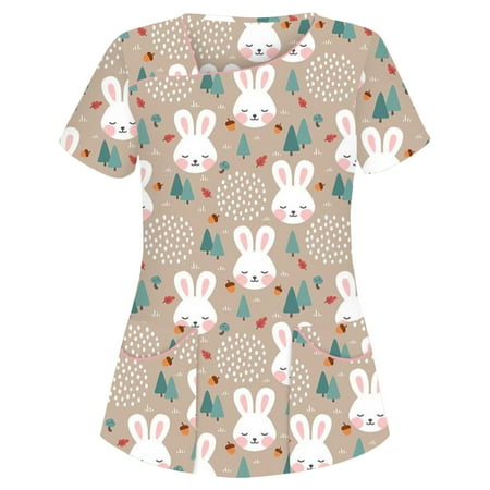 Women Scrub_Top Working Uniform Blouse Short Sleeve V-Neck Workwear T-Shirt with Pocket Comfy Tops M