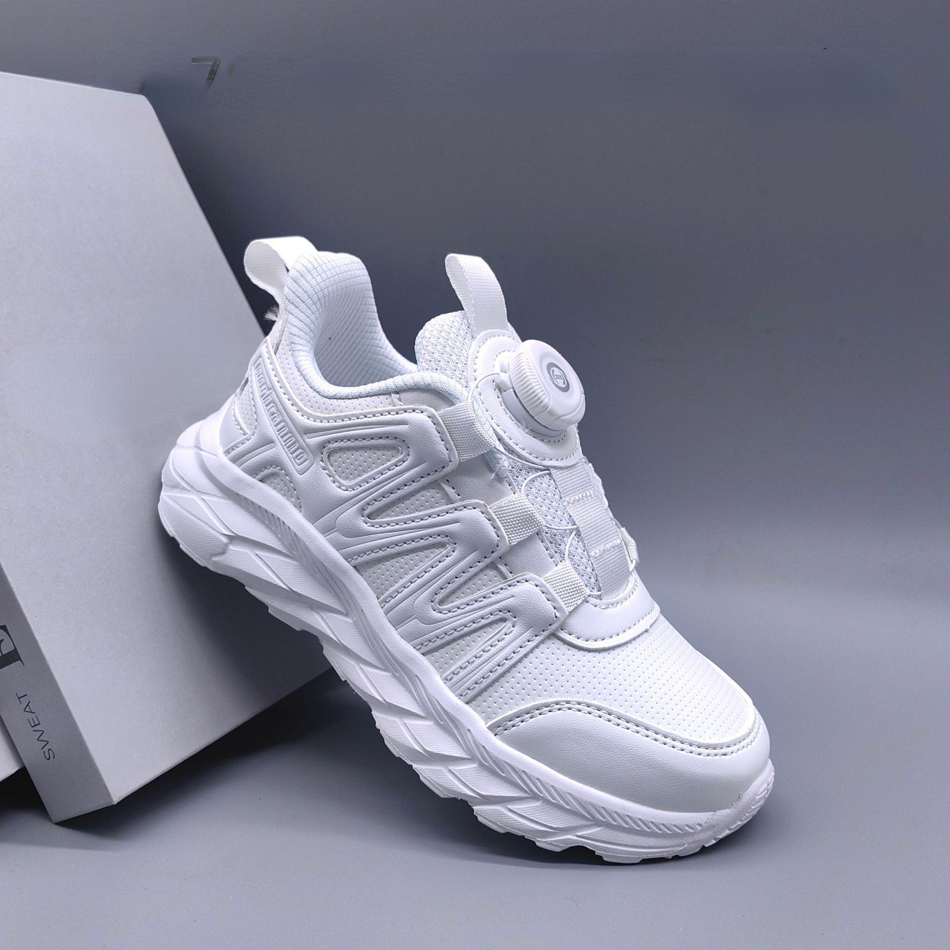 Кроссовки для спорта и отдыха с вращающейся пряжкой для мальчиков и девочек, маленькие белые туфли, весенние 37