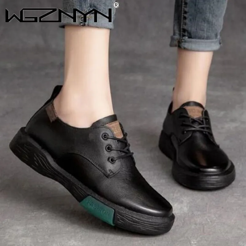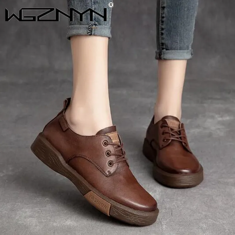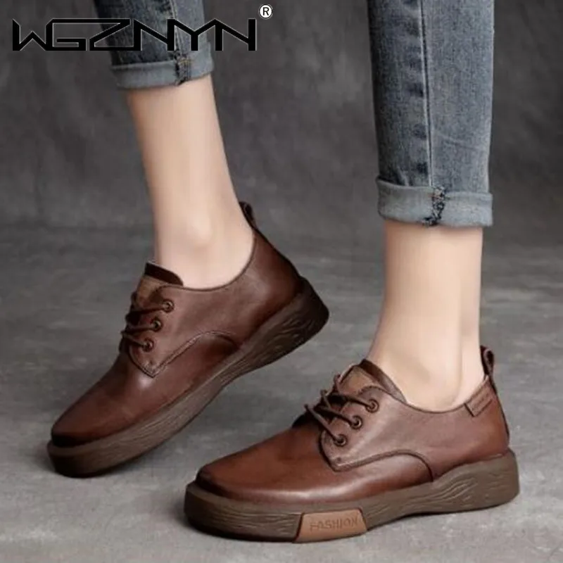 Кроссовки женские из натуральной кожи, повседневная обувь ручной работы в стиле ретро, плоская подошва, Студенческая обувь для девушек, вес...