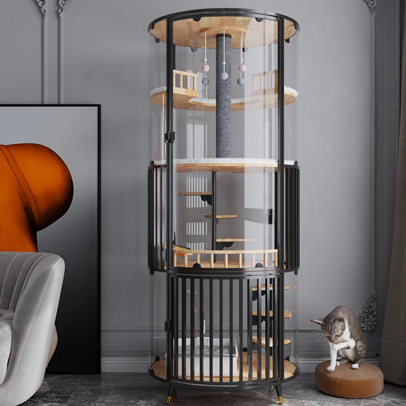 Круглая Клетка для кошек вилла 360 панорамный дисплей прозрачное стекло роскошное гнездо для кошек с унитазом твердый деревянный домик для к...