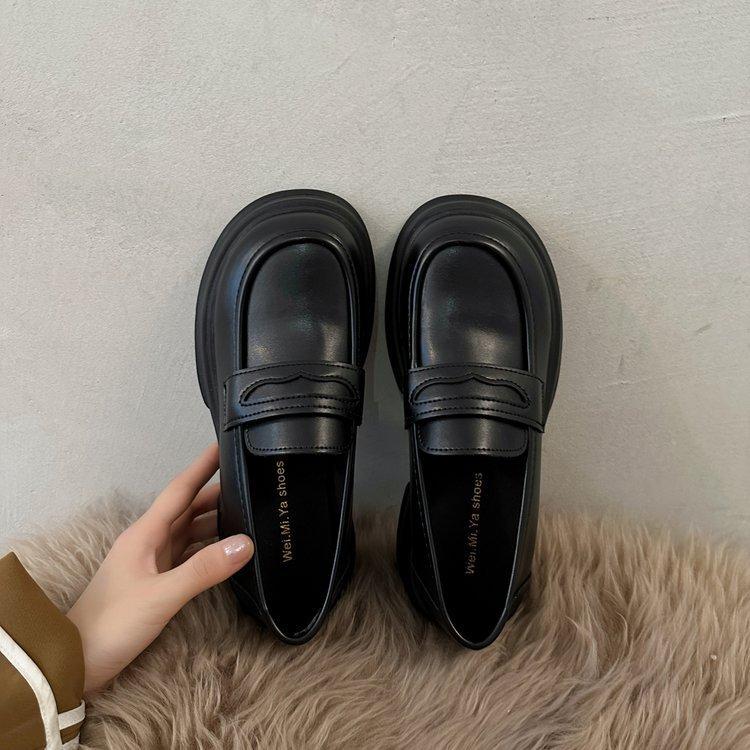 Круглая головка универсальные ретро черные туфли на толстой подошве женские летние французские толстые туфли с A Stirrups Lefou 40 чёрный