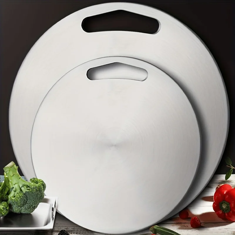 Круглая разделочная доска из нержавеющей стали, двухсторонняя с эргономичной ручкой для приготовления мяса, приготовления пищи, можно мыть в посудомоечной машине, домашняя кухня