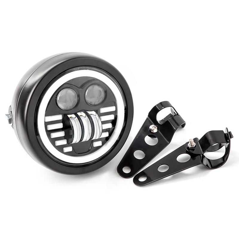 Круглая светодиодная фара для мотоцикла с кронштейнами в сборе, высокая мощность 26 Вт, суперяркая 6500 К, ретро-фара для передней части 12 В, универсальные детали чёрный