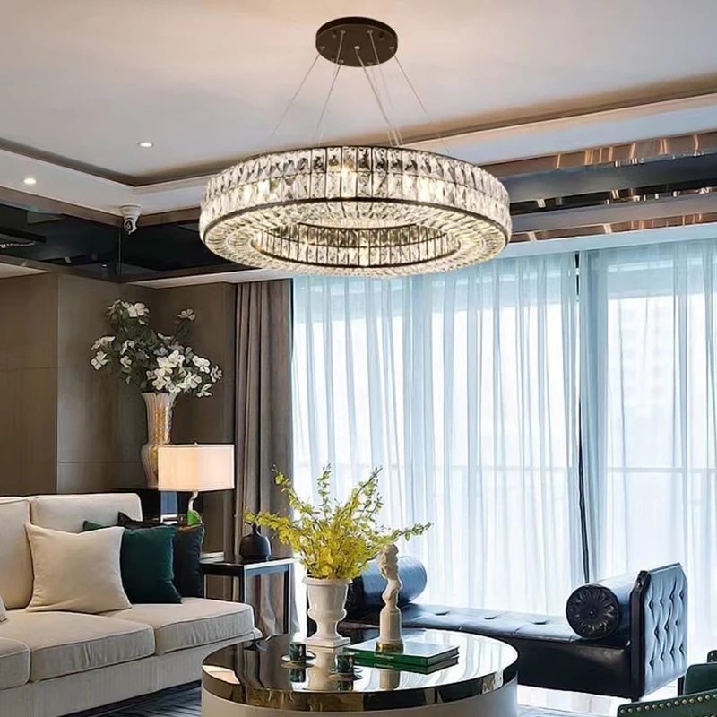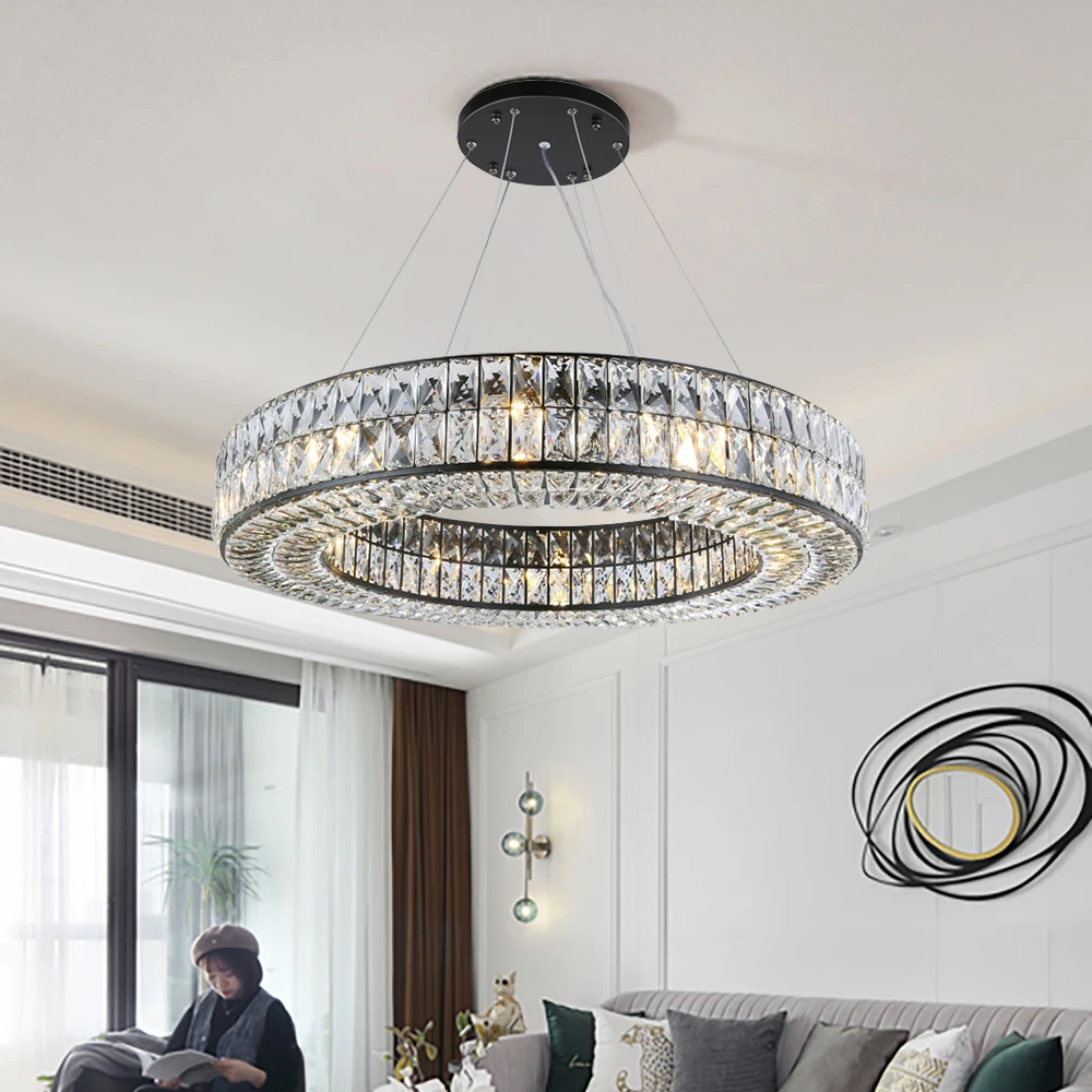 Круглая светодиодная хрустальная люстра, Современное украшение для гостиной, роскошная Подвесная лампа для дома, столовой, спальни, черная потолочная Подвесная лампа
