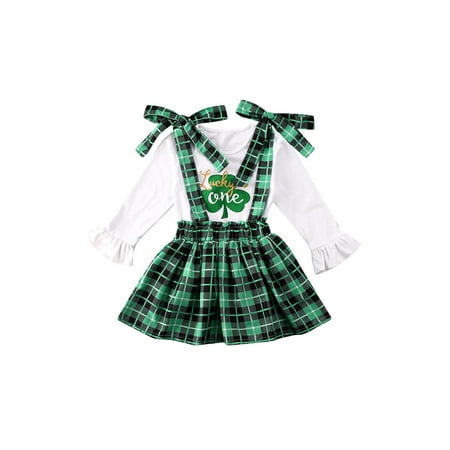 EYIIYE St. s Day Kids Girls Round Neck Letter Clover Pattern Print Pullover Tops Suspender Skirt Set