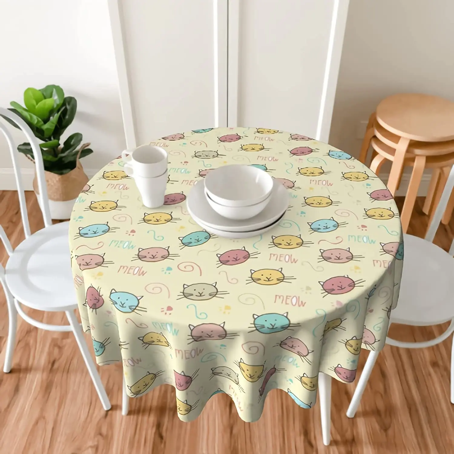 Круглая скатерть для стола с милыми рисунками кошек, 60 дюймов, смешная винтажная мультяшная кошка, рисунок питомца, моющаяся скатерть для ст...