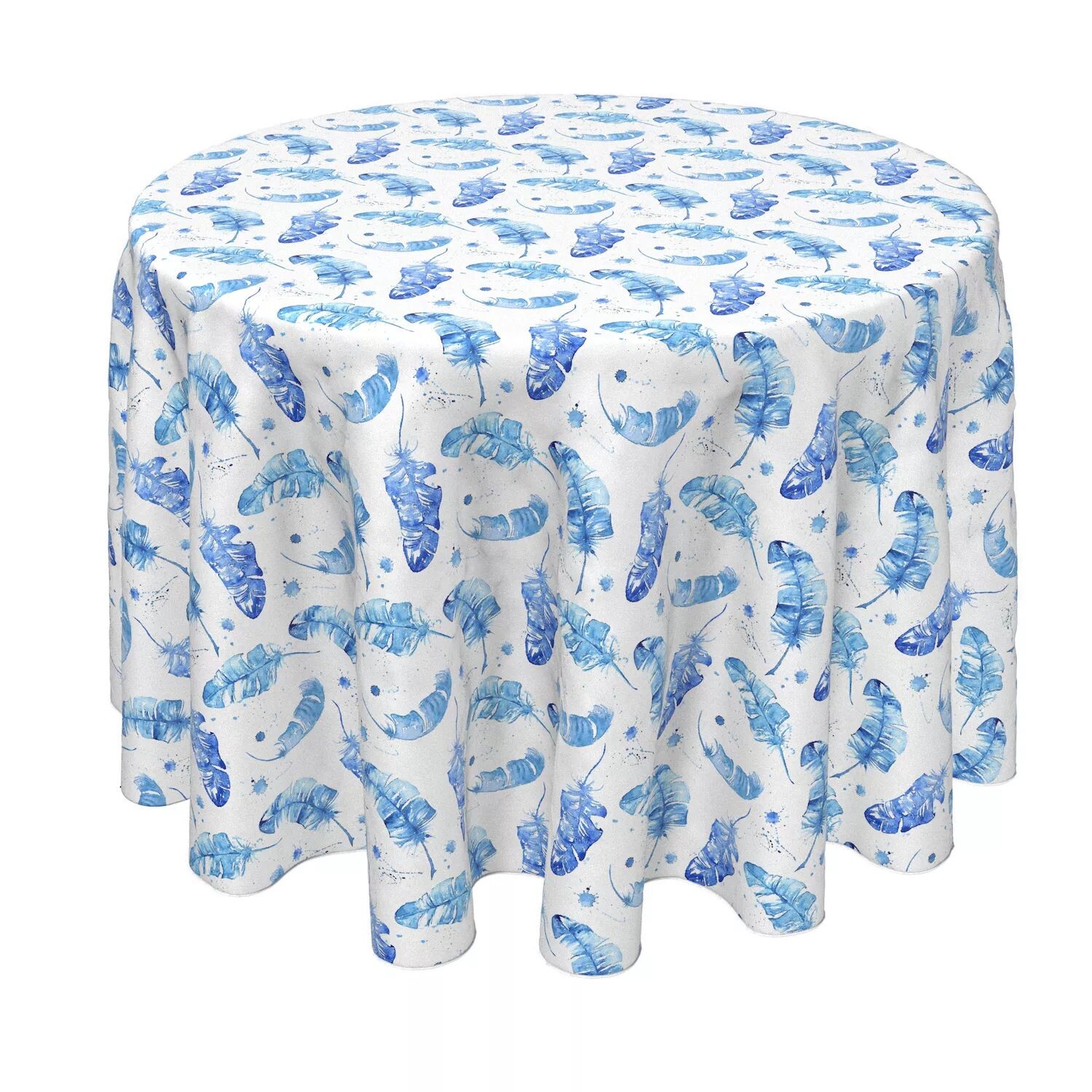 Круглая скатерть, 100% полиэстер, круглая 90 дюймов, синие акварельные перья.