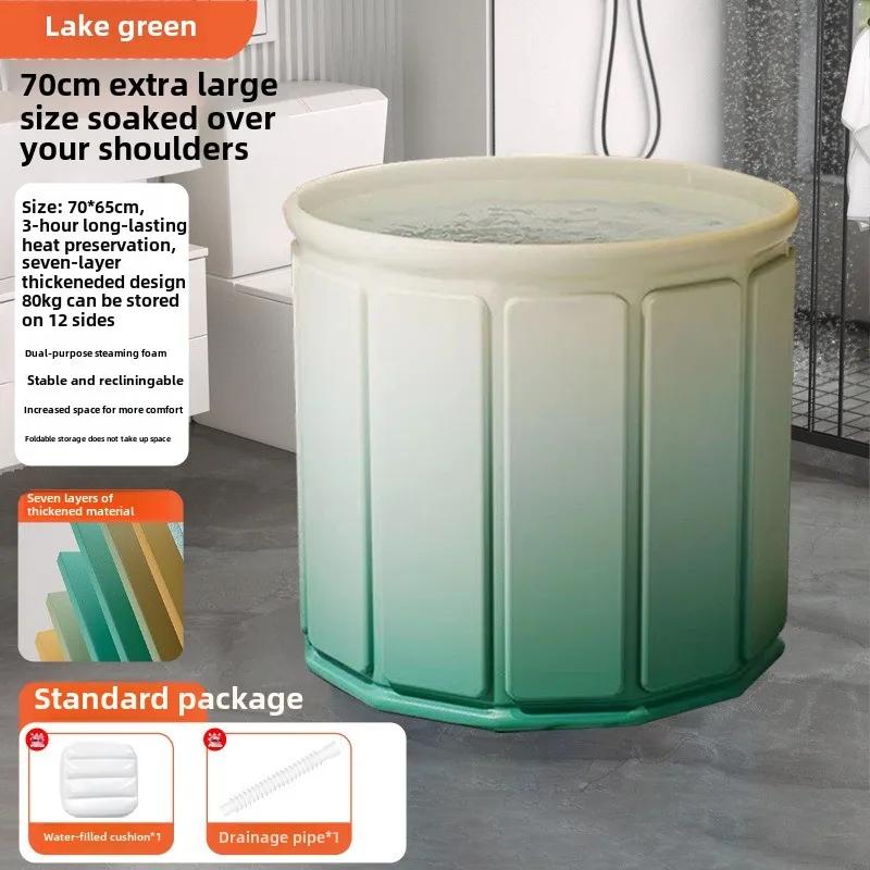 Круглая складная ванна для детей и взрослых, портативная ванна, СПА для ванной, удобное хранение, складное ведро для купания с крышкой озеро зеленый