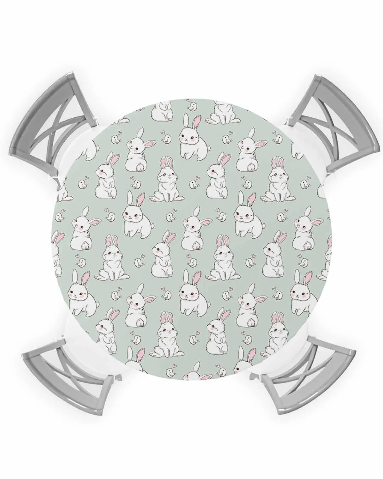 Круглая эластичная накидка на стол с зеленым Кроликом, Защитная ткань, водонепроницаемая прямоугольная скатерть из полиэстера