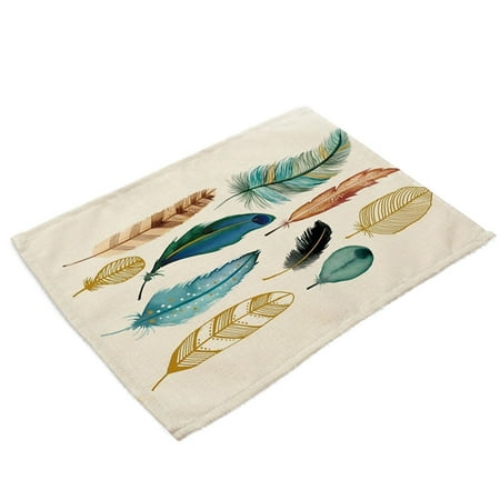 Feather Pattern Cotton Linen Table Placemats Dinner Kitchen Pad Coaster Mats G