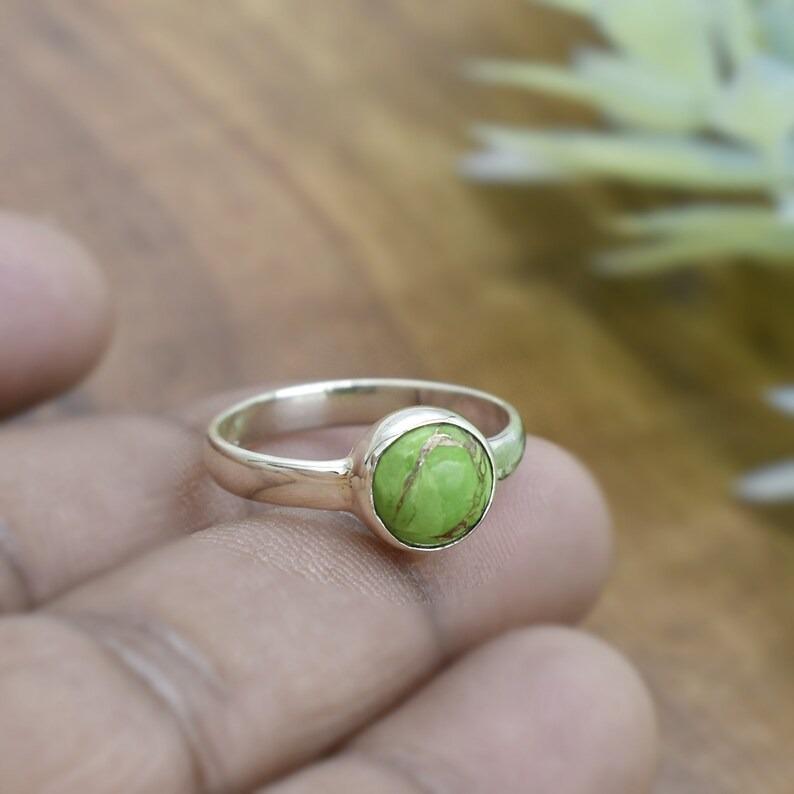 Круглое кольцо с зеленой медью и бирюзой, кольцо из цельного серебра 925 пробы, ювелирные изделия ручной работы, эффектное кольцо, кольцо с безелем 6