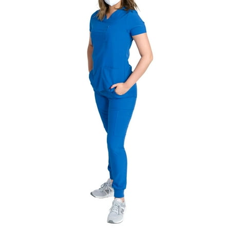 Medgear Fleur Women s Stretch Scrub Set with Zip Pocket Top and Jogger Pants Royal X-Large