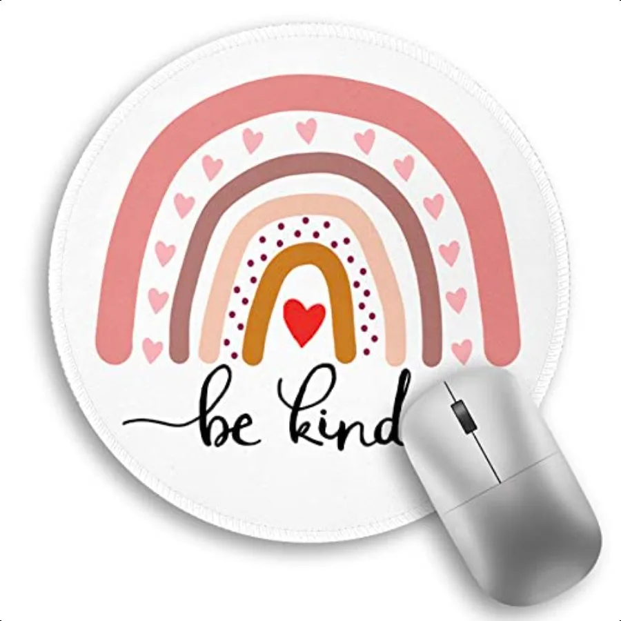 Круглый коврик для мыши Rainbow Be Kind, небольшой коврик для мыши с нескользящим резиновым основанием, коврик для мыши с прошитыми краями для стола, беспроводная мышь для игр Mou