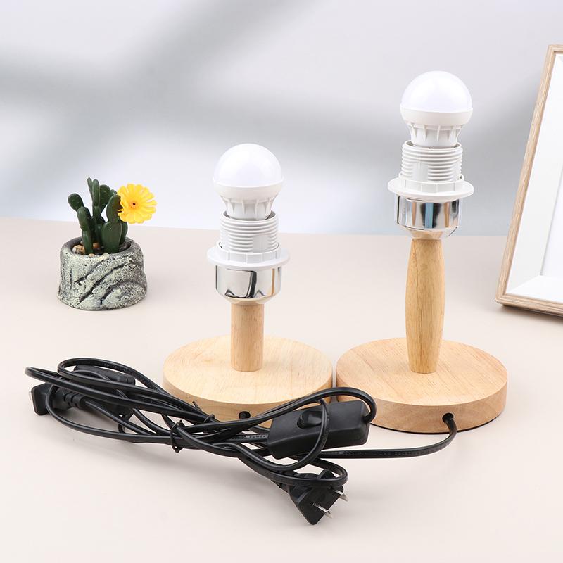Круглый твердый деревянный держатель с выключателем на шнуре для настольной лампы, вилка E27, держатель прикроватной лампы для домашнего освещения