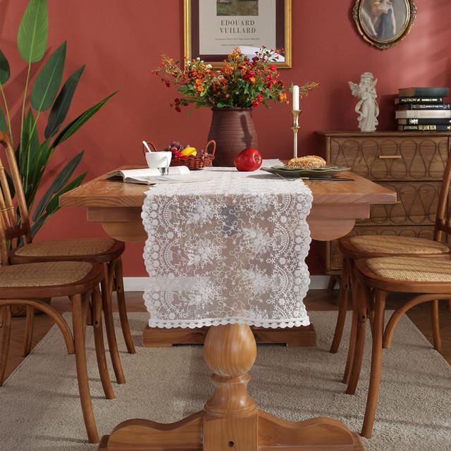 Кружевная дорожка для стола Свадебная марля Белая скатерть Сервировка стола Обеденная вечеринка Рождественские банкеты Арки Торт Домашний декор length 140cm