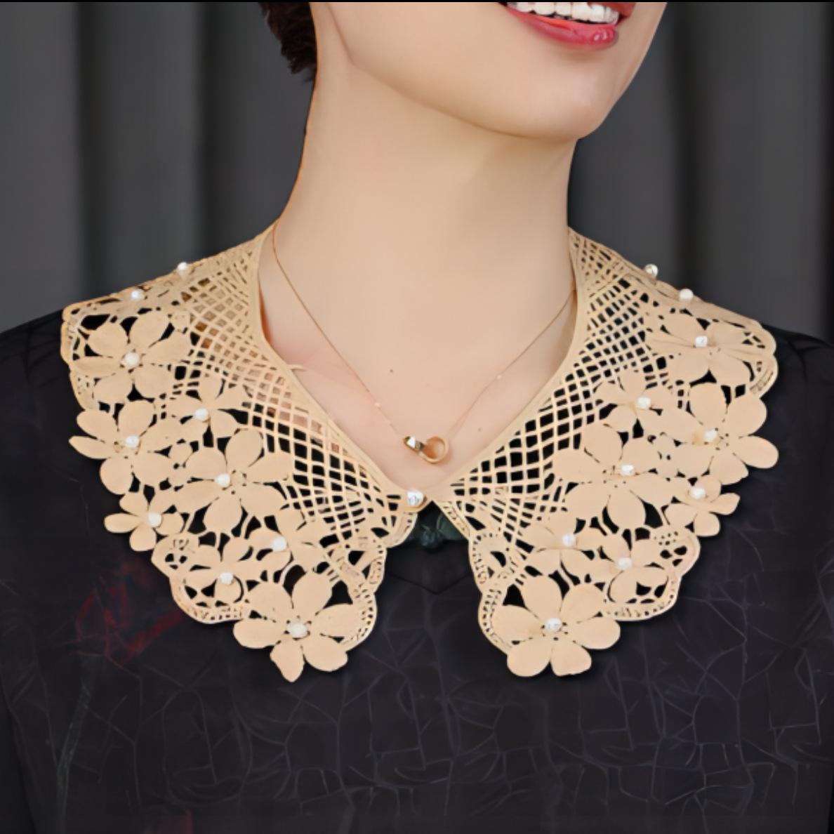Кружевная жемчужная цветочная ажурная вязаная шаль универсальная с юбкой рубашка ложный воротник омолаживающий кукольный воротник