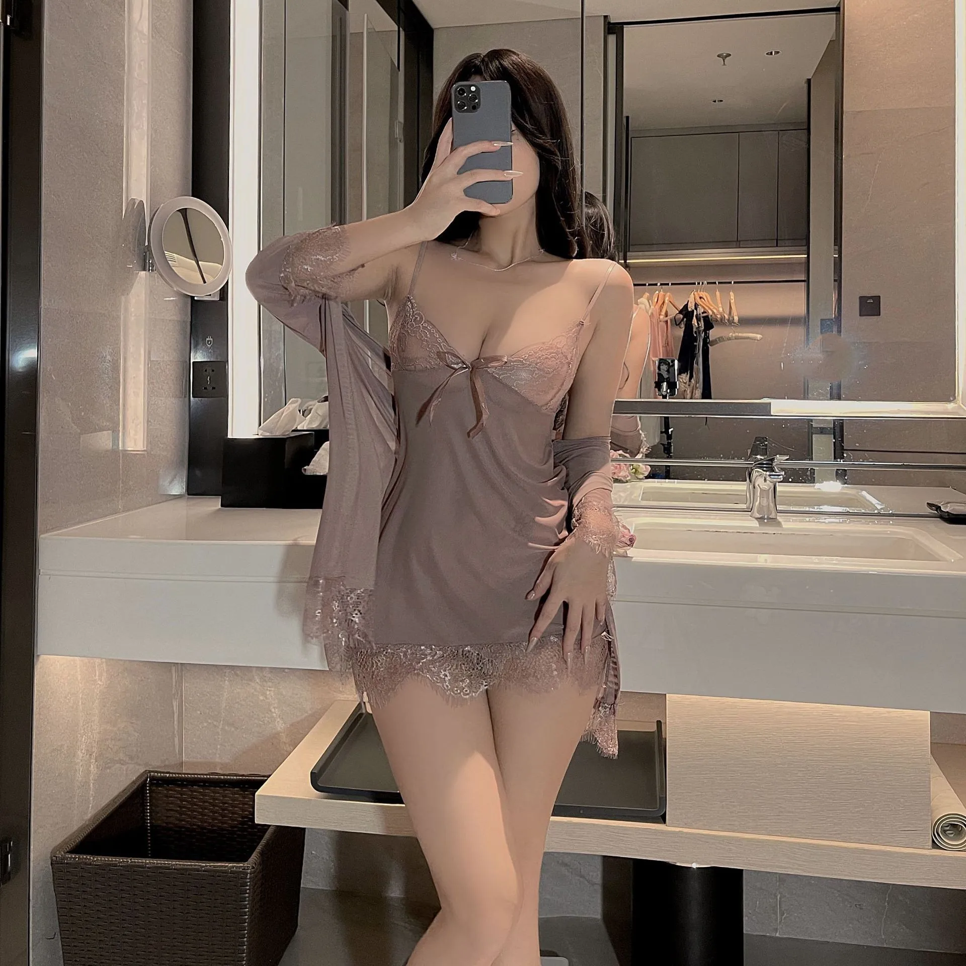 Кружевная ночная рубашка, сетчатая сексуальная пижама на бретельках, платье с открытой спиной, женские новые платья, женские пижамы, популярная корейская одежда, женская милая одежда