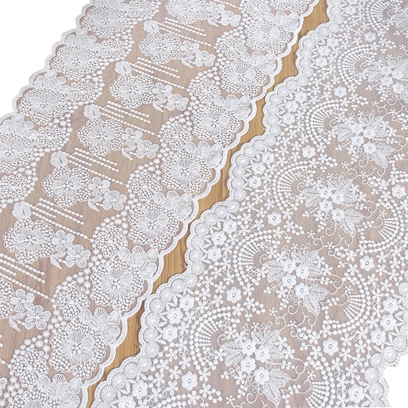 Кружевная отделка, белая марля, тюль, сетка, вышивка, Цветочная лента, Свадебная Женская ткань для шитья платья, 2 ярда