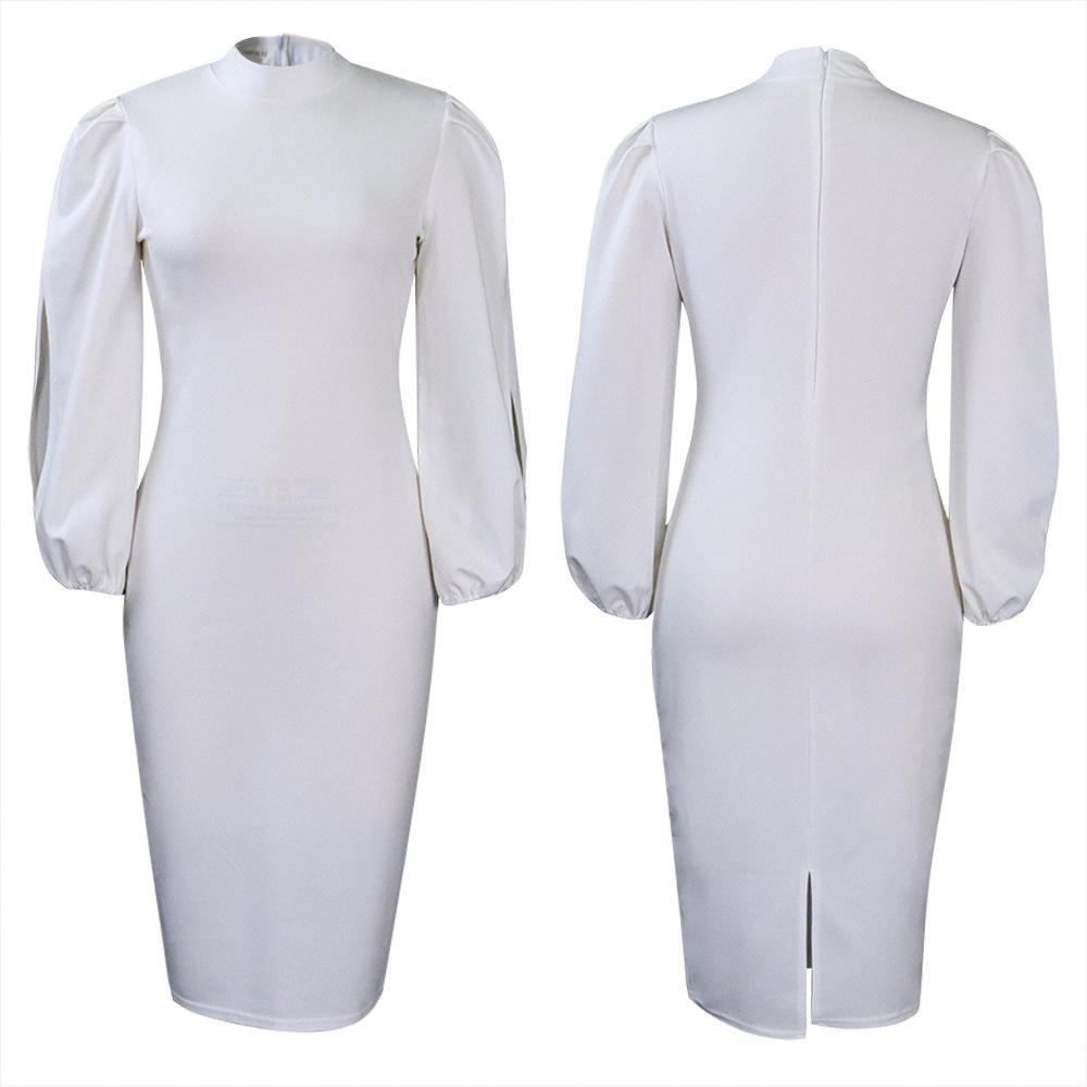 Кружевное платье женское больших размеров на осень/зиму 2022 года - Однотонное и элегантное Large белый
