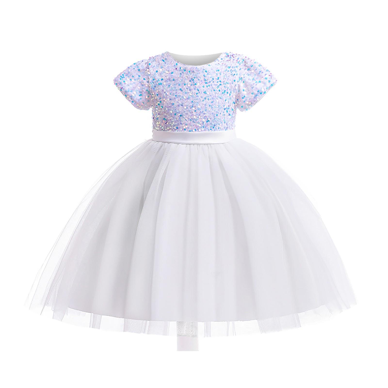 Кружевное платье принцессы с короткими рукавами для маленьких девочек, праздничное тюлевое платье, одежда для косплея 130 белый