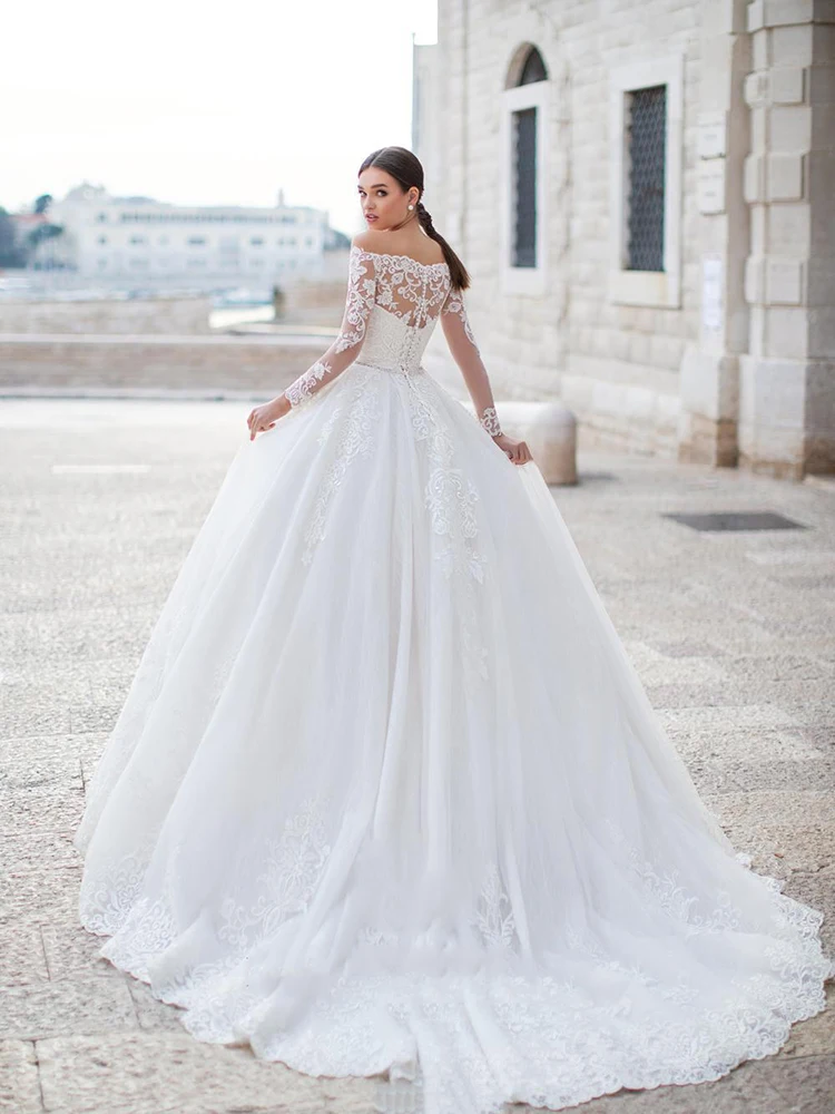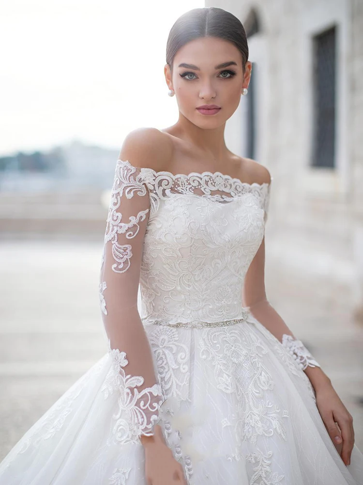 Кружевное свадебное платье на одно плечо, с длинным рукавом и аппликацией, украшение для ремня, свадебные платья, простые, в стиле ретро, кру...