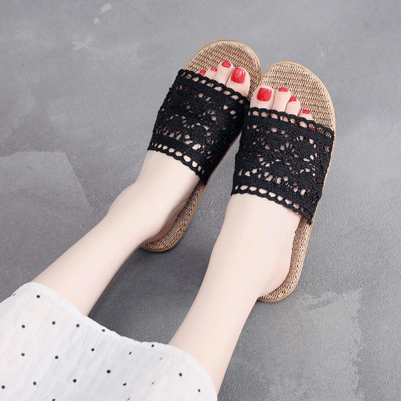 Кружевные домашние льняные тапочки на все сезоны, летние женские домашние нескользящие, для деревянного пола, бесшумные, с легким ароматом, прохладная обувь 39-40