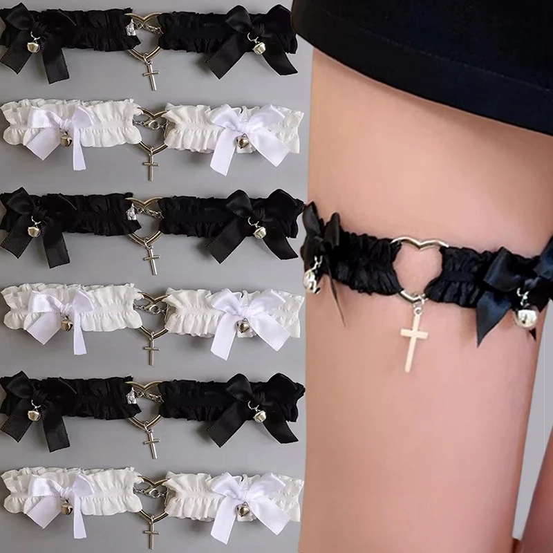 Кружевные подвязки в стиле "Лолита", пояс для ног в стиле панк, с перекрестным сердцем, женское эластичное кольцо-чокер в готическом стиле, женское нижнее белье, портупея для косплея